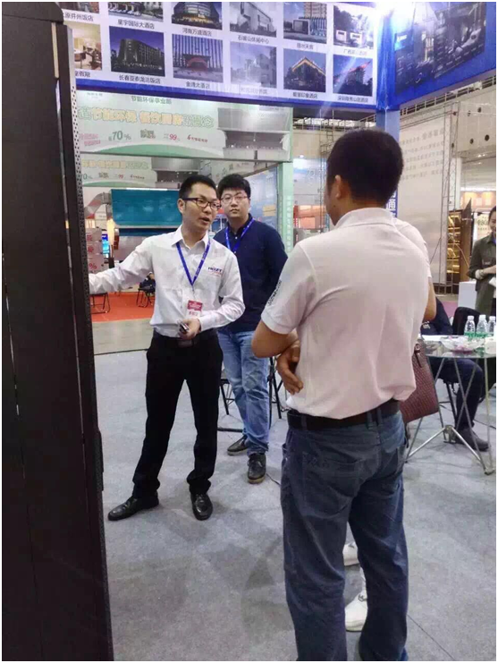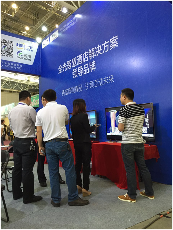 新聞來源:宏輝智通 發布日期:2016-06-12 瀏覽次數:3689 由仁創舉辦的2016第十一??屆湖南酒店用品及商用廚具展覽會,于2016年6月3日-5日在湖南國際會展中心二樓開幕。在這場為期三天的國際展覽會上,深圳市宏輝智通科技有限公司的2016最新智慧酒店視訊系統及監獄視訊系統,與湖南分公司的同事一起精彩亮相,其更加精美的系統界面吸引的各界人士的到來,讓每個觀眾都眼前一亮。
