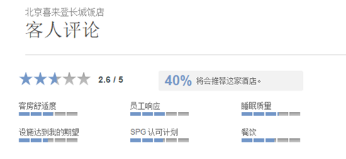 圖注:SPG官網北京喜來登長城飯店會員好評率僅為52%