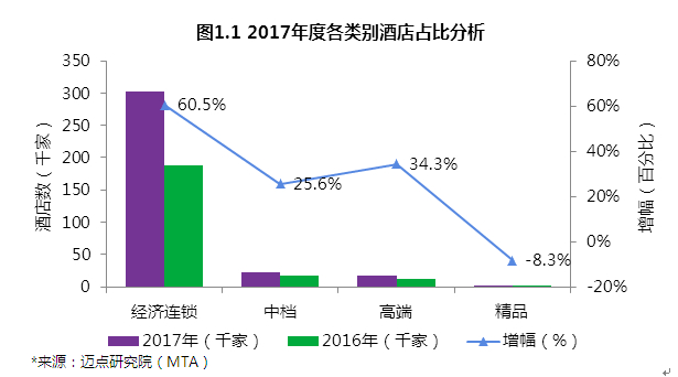 新聞來源:宏輝智通 發(fā)布日期:2017-11-17 瀏覽次數(shù):3366截至2017年9月,我國各類酒店合計已接近40萬家。如此龐大的市場內(nèi),中高端酒店仍存在結(jié)構(gòu)性不足問題,其市場份額尚不足20%。