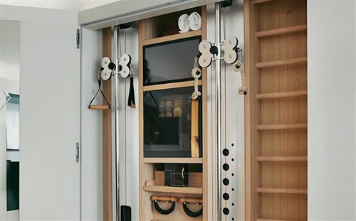蘇黎世瑞士酒店的活力套房中有設施齊備的健身器材墻,墻上的觸屏系統還能根據客人要求提供在線健身課