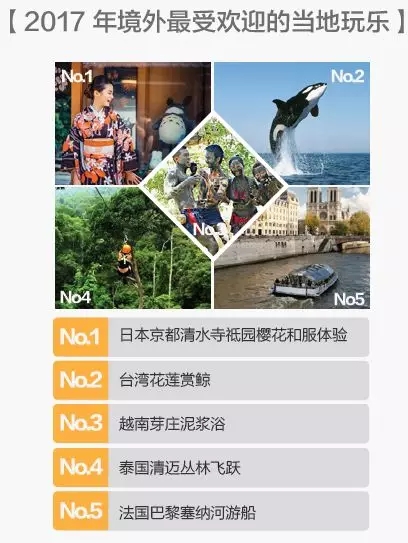 2017年最受歡迎的15 個境外城市全部地處亞洲,其中,日本京都、馬來西亞沙巴和吉隆坡首次上榜。