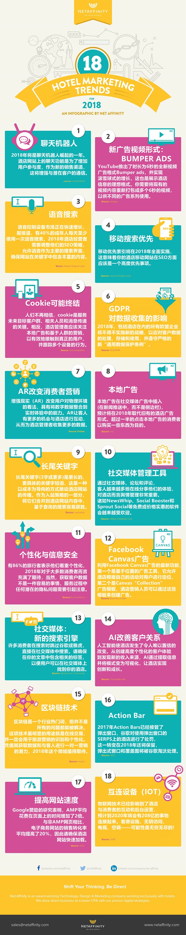 Net Affinity近日為酒店經(jīng)營(yíng)者列出了2018年值得關(guān)注的18個(gè)關(guān)鍵的營(yíng)銷趨勢(shì),希望經(jīng)營(yíng)者能從中獲得啟發(fā)。