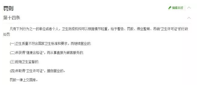 記者注意到,還有部分酒店因?yàn)檫`反《公共場(chǎng)所衛(wèi)生管理?xiàng)l例》第十四條第一款第(二)項(xiàng)的規(guī)定:“未獲得‘健康合格證’,而從事直接為顧客服務(wù)的?!?北京金土城賓館、北京順德園酒店管理有限責(zé)任公司、北京趣舍酒店管理有限公司和北京宏善緣旅館等均因此項(xiàng)受罰。