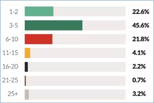 從過去連續三年的調查報告中可以看出,提前2個月預訂的人數占比最高,而幾乎三分之二的消費者會提前至多三個月來預訂住宿。然而,還有超過四分之一的受訪者表示他們會提前至少5個月來完成住宿預訂。