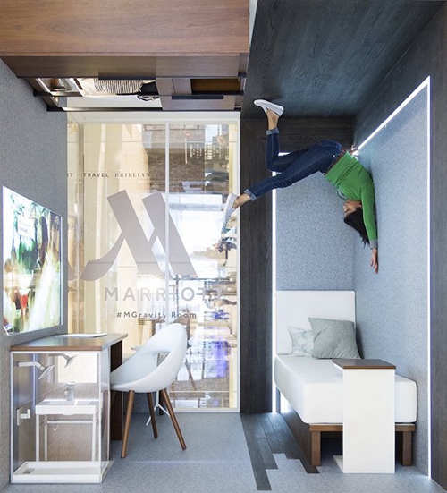 前兩天,萬豪推出了一個(gè)新玩意:上下顛倒的房間(MGravity Room)。