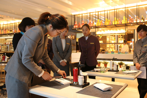 與此同時,G20峰會前夕,酒店針對接待代表團的特殊性,外請培訓老師開展多種培訓,共投入數萬元培訓費,組織47次,共有1512人次參加。培訓包括:5場食品安全、5場安全意識培訓、2場服務禮儀培訓、2場西餐服務禮儀、6場內部援助團隊培訓等,讓各部門的同事都能擁有高度的G20服務意識和專屬城中香格里拉的服務精神。