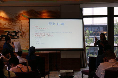 “酒店還考慮到了語言的問題,由于我們接待貴賓的母語是阿拉伯語,所以酒店員工都學習了簡單阿拉伯語,并在菜單、電視接單等物料上都額外再加上阿拉伯語。阿拉伯文化和習俗,包括餐飲方面,都是我們接待工作的重點,必須嚴格遵守阿拉伯的飲食文化。”酒店高管表示道。