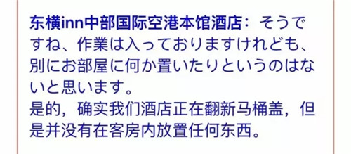 事情現在的反轉是“東京新青年”對東橫inn中部國際空港酒店的采訪錄音,被采訪的酒店完全一副不知道的懵逼樣子,完全沒有發生描述的把翻新馬桶蓋放在客房等著被人順走的樣子。