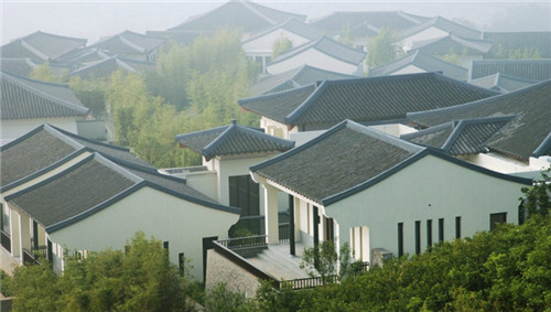 富春山居位于富陽市,設計由 Jean Michel Gathy 打造,是中國第一個用現代建筑藝術來闡釋江南建筑風格的酒店,既幽雅精致,又舒適現代。度假村擁抱湖光山色,還原了《富春山居圖》中的景象,并擁有亞洲唯一以丘陵地形和茶園為主題的 18 洞高爾夫球場。在這里,就像住進一幅山水畫。