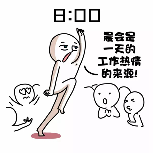 上戰場前,需要知己知彼。早會上,你匯報昨天的工作情況,安排今天的工作,最后,領導會給你帶來一碗雞湯,成為一天的工作熱情的來源。