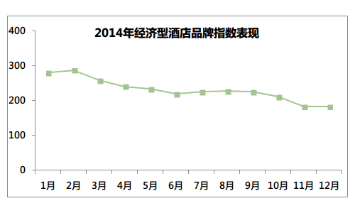 同質化競爭的現象,首先在經濟型酒店市場品牌影響力中反應出來。從圖上表單可看出,經濟型酒店品牌在2014年,品牌指數呈現總體下降的趨勢。這當中除了部分優秀、發展成熟的品牌外,多為后進入市場的后來者。