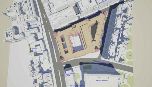 倫敦戰時辦公室屬于英國二級歷史性保護建筑,建于1906年,耗資120萬英鎊,放在今天也有1億英鎊左右。1898年,建筑大師William Young被任命為戰時辦公室的建筑師,不過兩年后,William就去世了。后來,子承父業,他的兒子John Taylor接手了這座建筑的設計工作。為了最大限度的利用白廳街的土地,辦公室被設計成梯形。從年1901到1906年,花了5年時間,辦公樓修建完畢,總共7層,建筑面積58萬平方英尺,用了3萬噸波特蘭和約克石材以及2500萬塊石磚,有2.5英里的長廊過道。