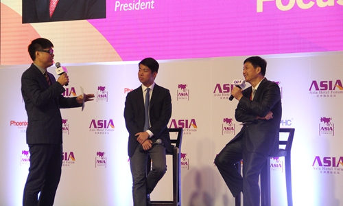 鳳凰資產管理執行董事陳恒(左) 鷗翎投資 合伙人、董事會董事江天一(中)、萬達酒店及度假村總裁錢進 (右)