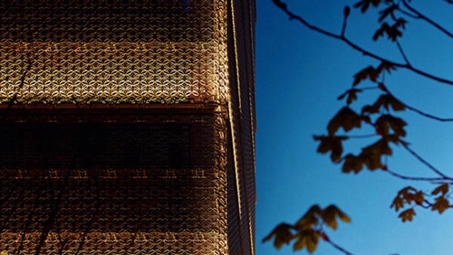東利惠的設計靈感源自“寶箱”的創意,三菱地所設計(Mitsubishi Jisho Sekkei)和 NTT Facilities 負責把構想轉變為現實。東利惠表示:“江戶小紋是一種古老的和服紡織物。從遠處看似乎只有一種顏色,但從近處看,就能看到復雜花紋和精致細節。我們想在建筑上呈現這種效果:從遠處看是黑色,走近就能清晰地看到江戶小紋圖案。”