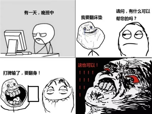 有一天半夜,客人喊我們客房的服務員去房間把床墊全部翻個面,原因是打牌輸了,要翻身!