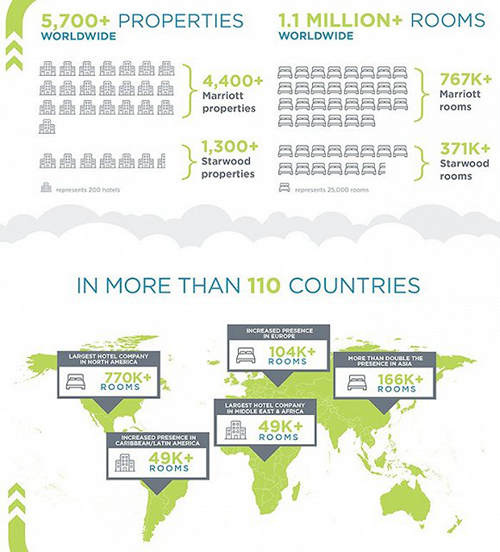 合并喜達屋后,萬豪在全球110多個國家和地區共管理或加盟超過5700家酒店。 圖表來源:conventionresortnetwork.com