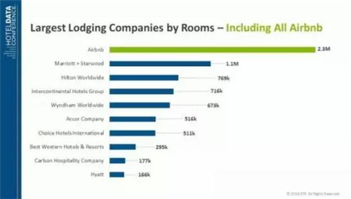 一年前在討論 Airbnb 與酒店業(yè)的競爭關(guān)系時,最受關(guān)注的還是諸如“房間數(shù)”這樣的問題,行業(yè)調(diào)研機構(gòu)STR Global 的數(shù)據(jù)顯示,目前 Airbnb 在全球近 3 萬個城市所能提供的房源總數(shù),已經(jīng)超過了 230 萬個,增長速度相比前兩年仍有提升。這個數(shù)字,相當(dāng)于全球最大的酒店集團(tuán)“萬豪+喜達(dá)屋”組合客房總數(shù)的兩倍有余。