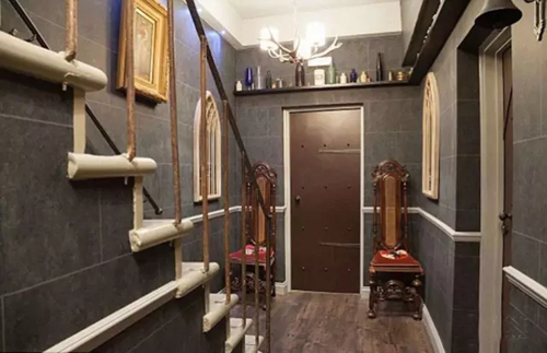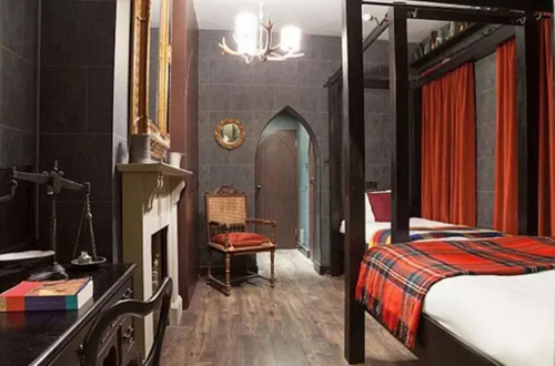 雖然這間酒店與羅琳的創(chuàng)作沒有關(guān)系,但其房間的靈感來源于《哈利·波特》小說的內(nèi)容,仿制“霍格沃茨魔法學(xué)校的臥室”推出了霍格華茲主題套房。