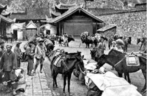 車夫在騾馬店歇腳、喂食牲口