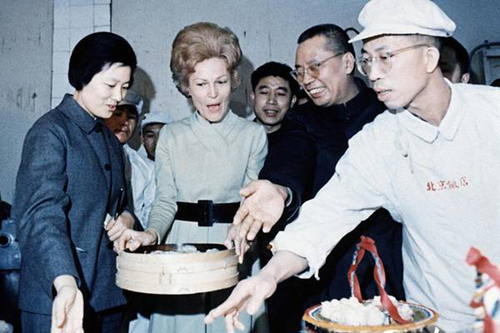 尼克松夫人還跑到飯店后廚去參觀,廚師每做一道菜她就嘗一道,“還沒等菜上桌,她就已經吃飽了”。
